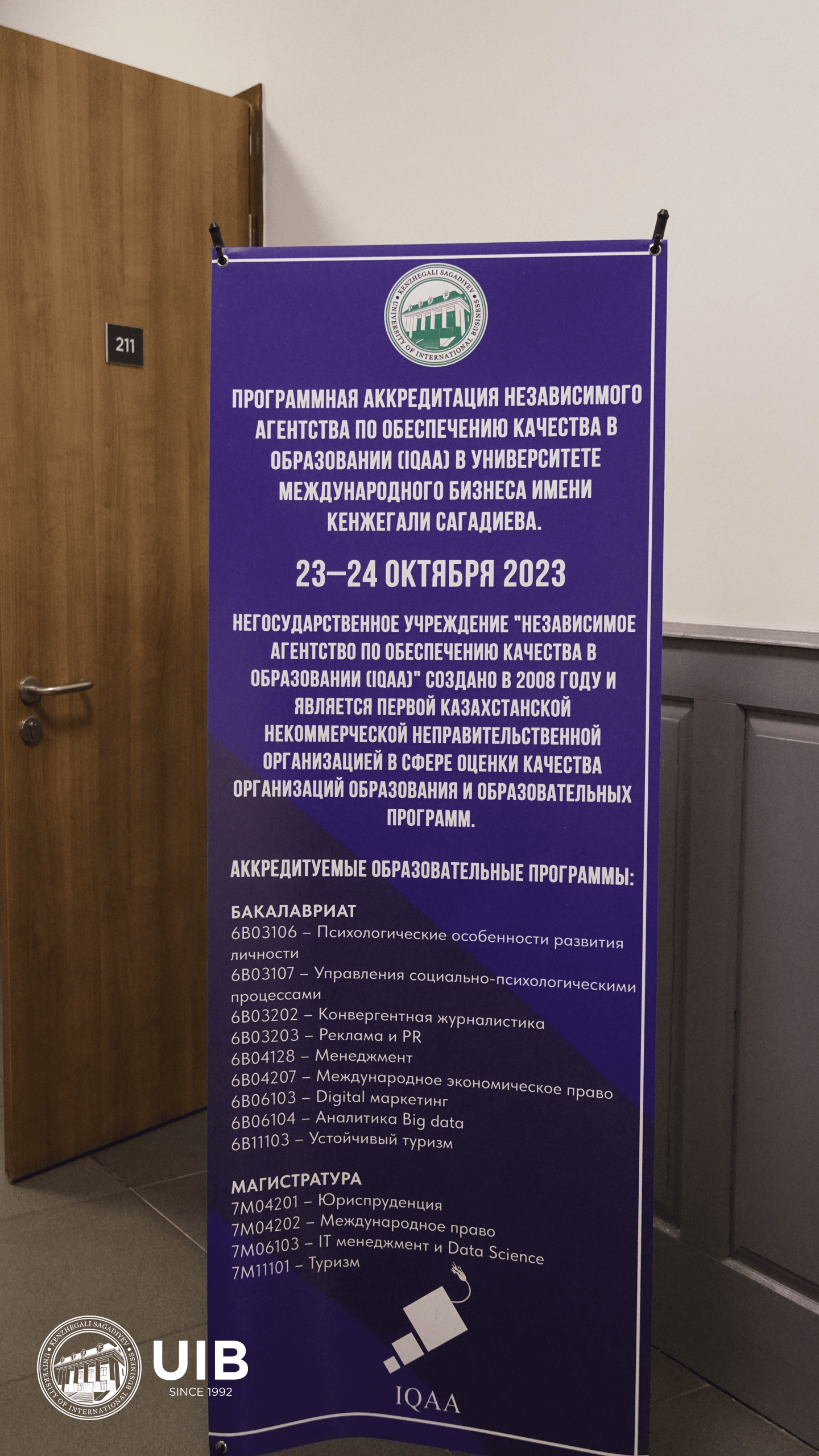 С 23 до 25 октября 2023 «Независимое агентство по обеспечению качества в образовании (IQAA)» проводит аккредитацию образовательных программ в Университете Международного Бизнеса имени Кенжегали Сагадиева!